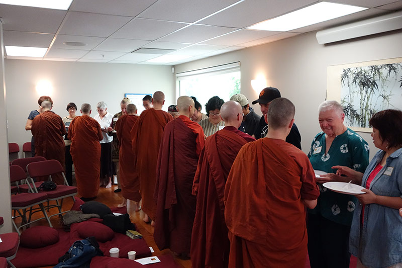 On Saturday September 13th, a group of over 50 supporters of Saranaloka came together to celebrate the Bhikkhuni Sangha with an annual Almsgiving Ceremony. This tradition, dating back to the time of the Buddha and the very beginning of the Buddhist monastic order, is an opportunity for the lay community to come together and make offerings of robe-cloth and other requisites, including financial donations, in support for the monastic Sangha.