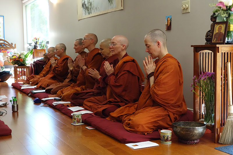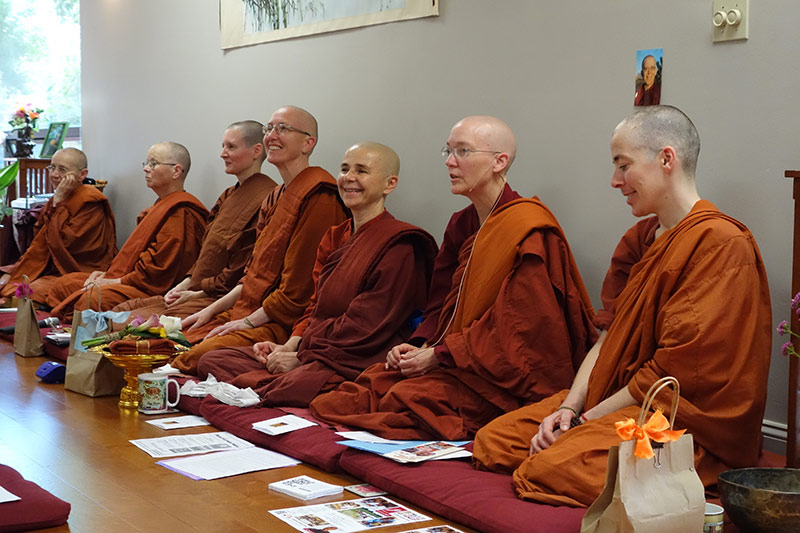 On this auspicious day we also celebrated the 4th International Bhikkhuni Day – bringing together bhikkhunis from Dhammadharini Vihara in Santa Rosa, Aranya Bodhi Hermitage in Jenner, Karuna Buddhist Vihara in Mountain View, with our Aloka Vihara sisters from Placerville. In commemoration of International Bhikkhuni Day, Ayya Tathaaloka gave a beautiful and uplifting talk about Yasodhara, the former wife of the Buddha, who in her lifetime ordained as a Bhikkhuni and became fully enlightened.